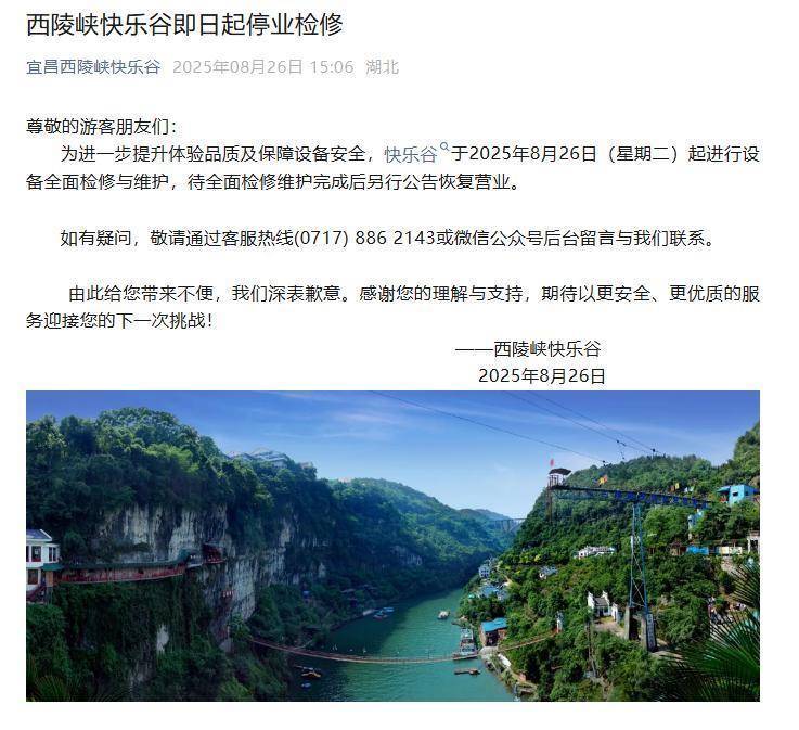8月26日华瑞优配,宜昌西陵峡快乐谷发布公告:
